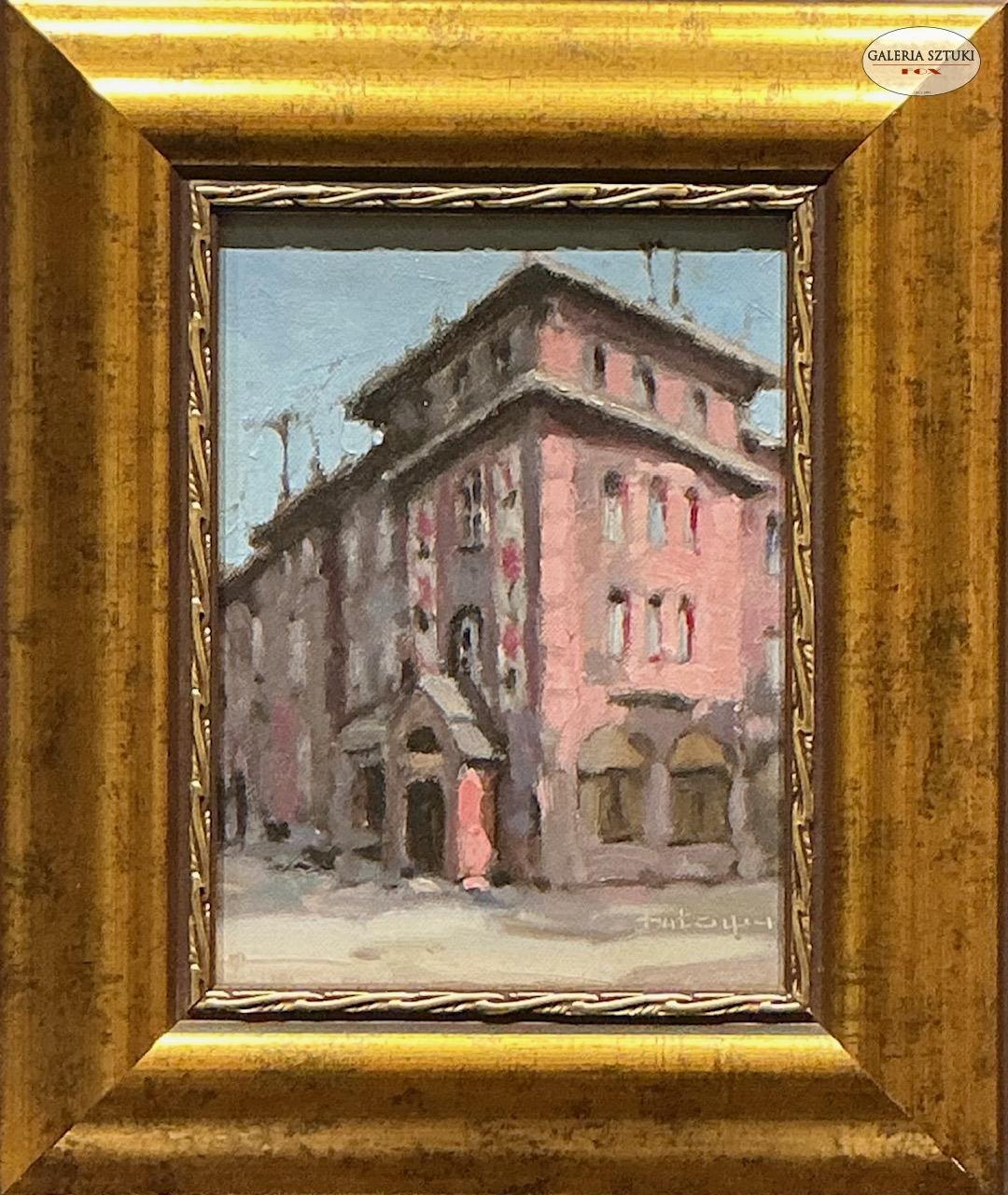 Tadeusz Buława, obraz pt. "Poczta - Nikiszowiec", olej na płótnie, o wym. 24 x 18 cm.